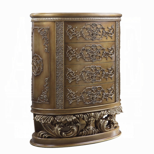 Luxurious style, sophisticated charm, and lustrous finishes are all included in the Vanaheim Bedroom Collection. Extravagant scroll floral design ...